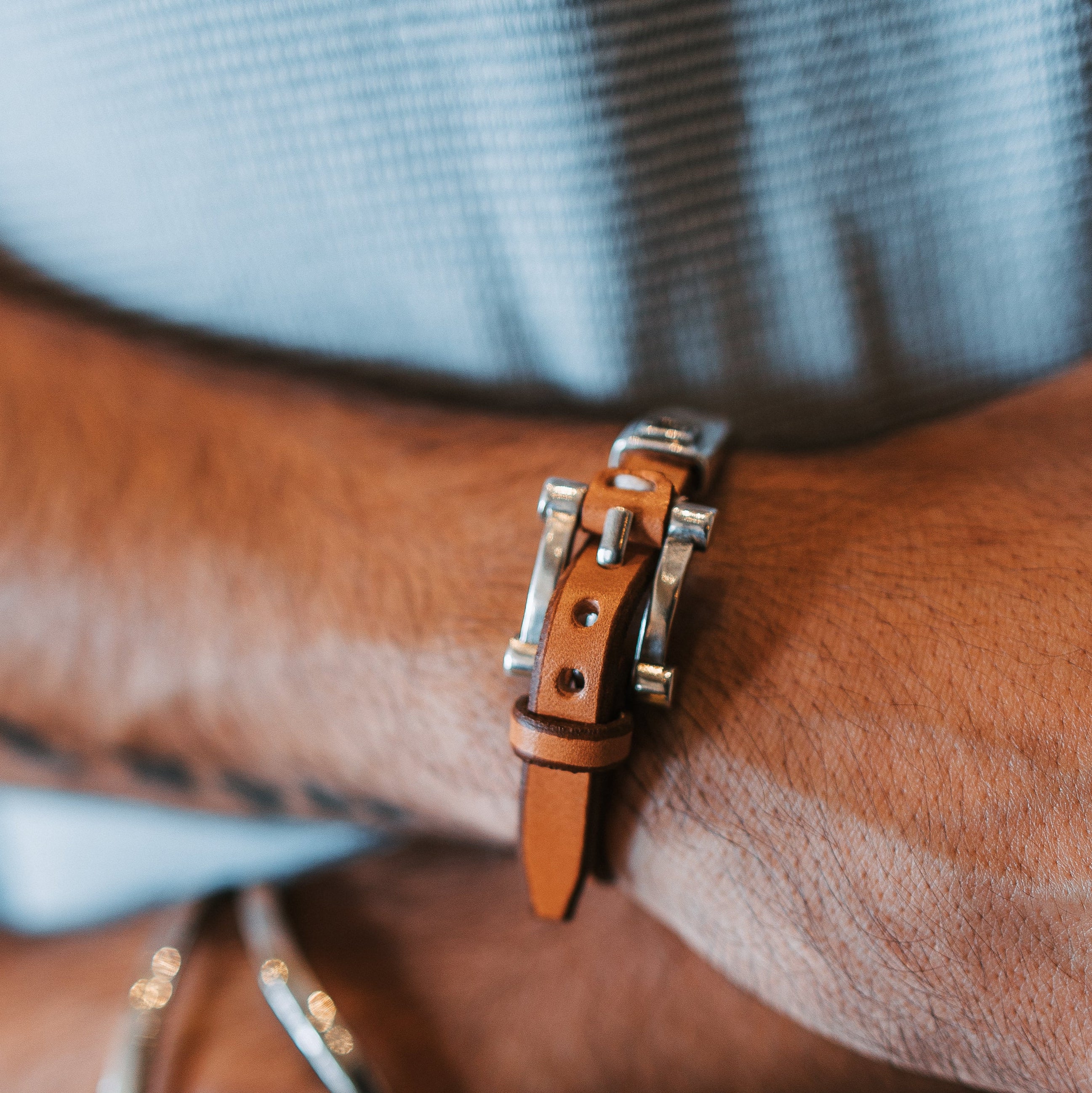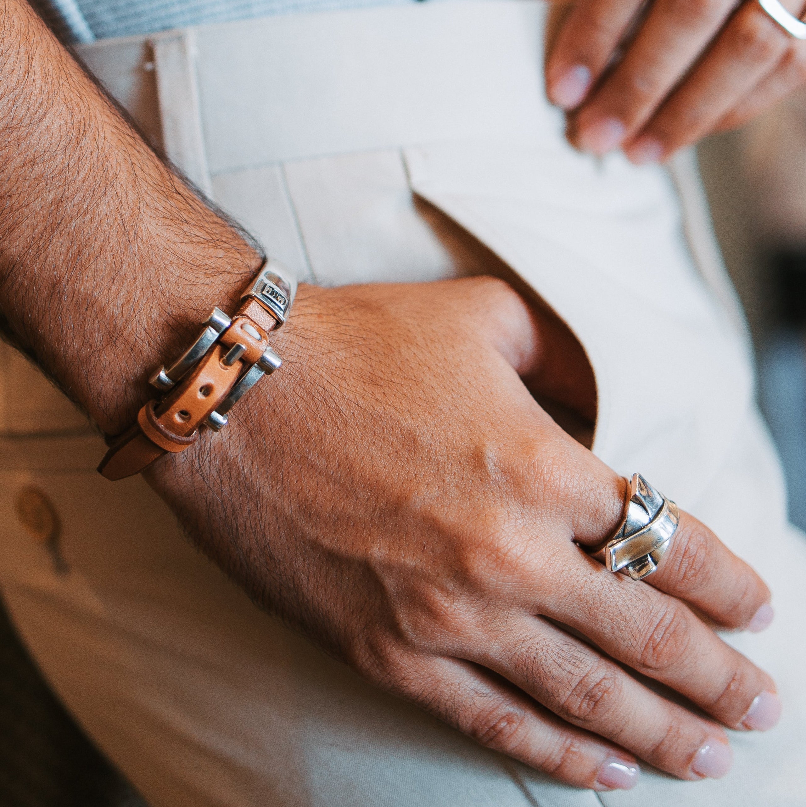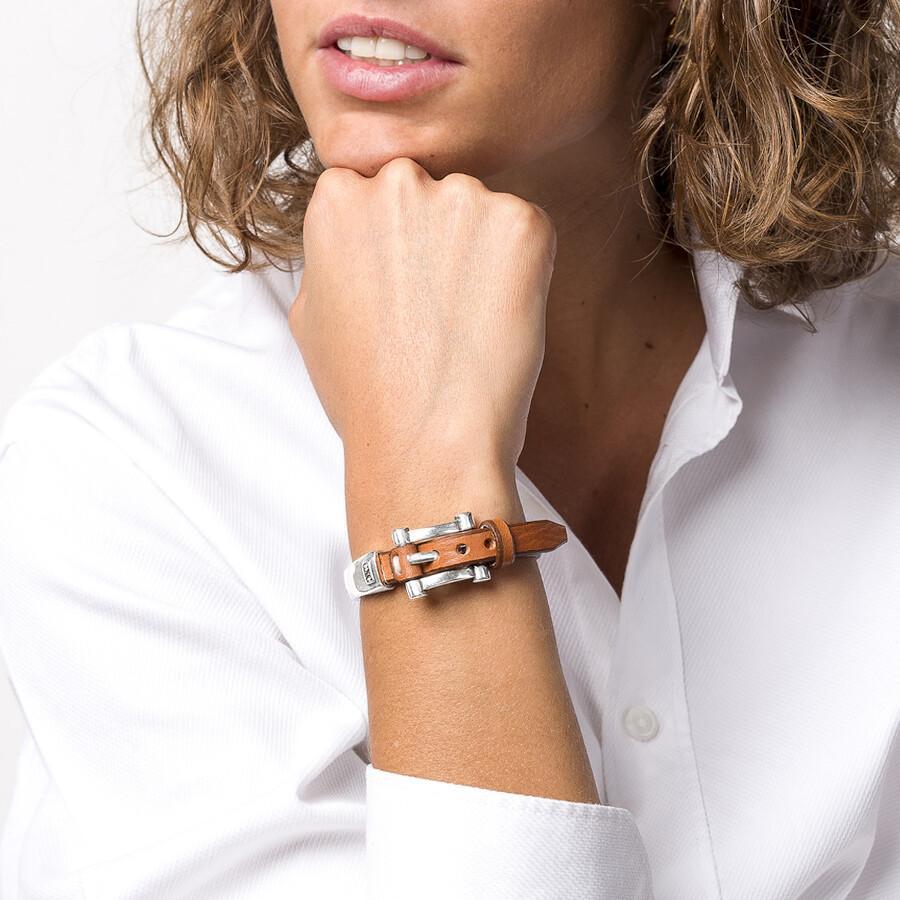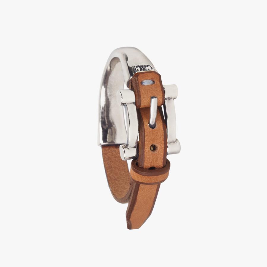 This signature buckle bracelet is an ideal daytime staple. The model is made of a metal alloy and plated in silver. Also available in gold. Exclusive CXC design, handcrafted in Spain.