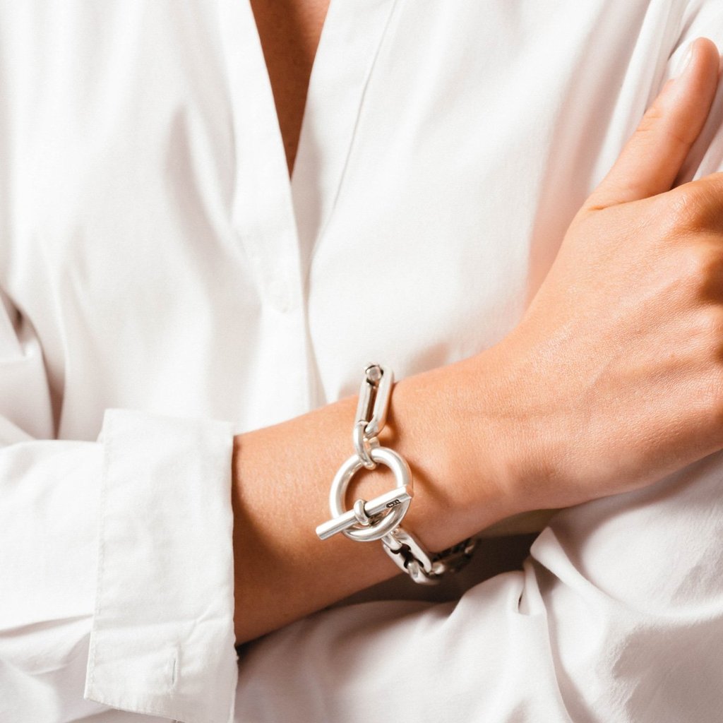 This bracelet with small silver-plated brass links is ideal for you. Exclusive CXC design, handcrafted in Spain.
