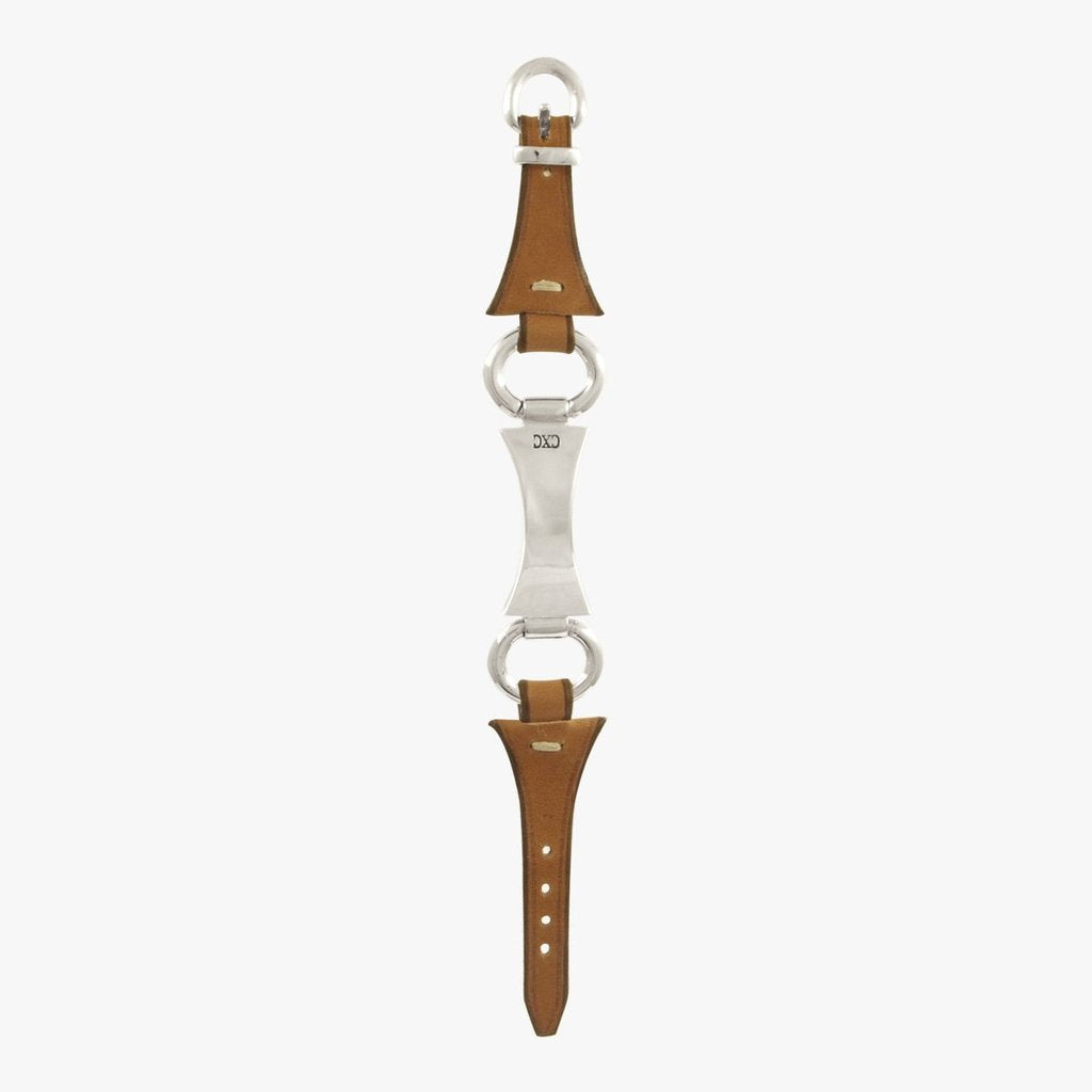 Silver Plated Bracelet, Vegetable tanned camel leather with matted edge, painted and filleted by hand and with sewing also done manually.