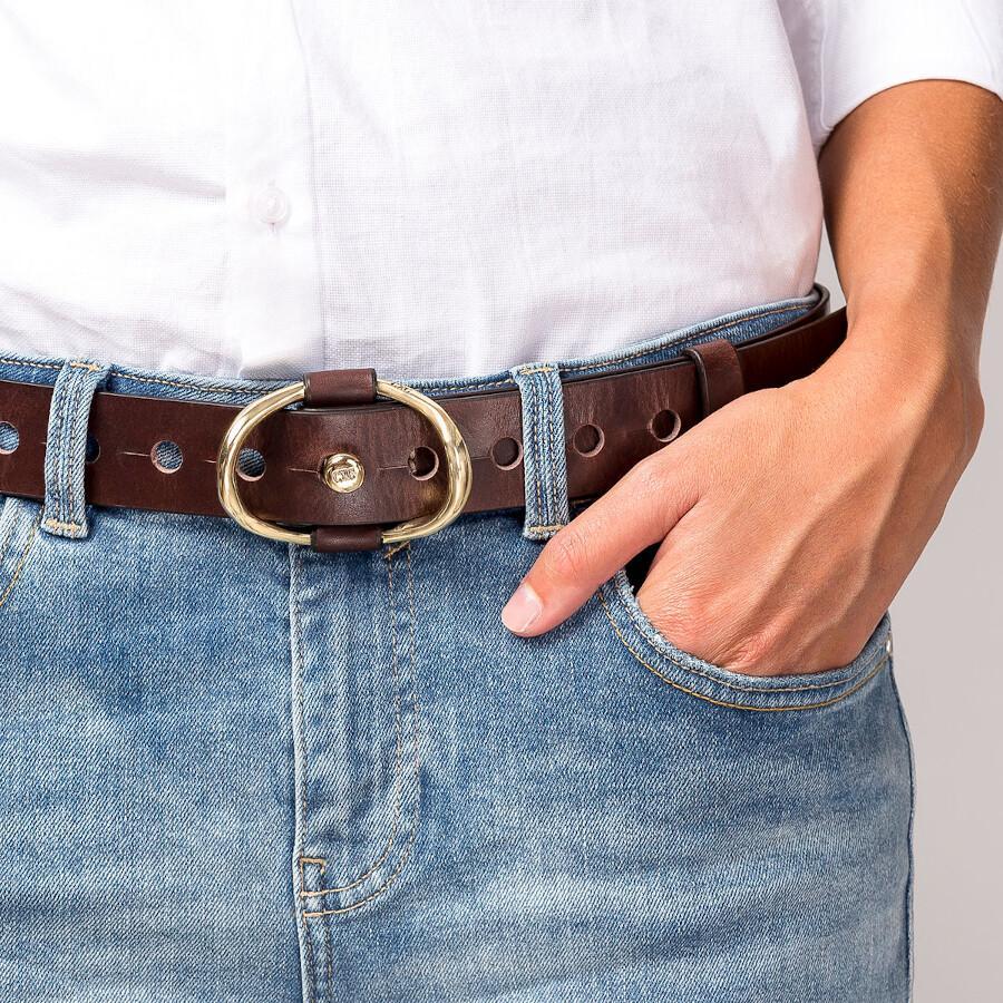 Classic brown leather belt with discreet oval buckle. The leather is vegetable tanned with polished and hand-cut edges. Exclusive CXC design, handcrafted in Spain.