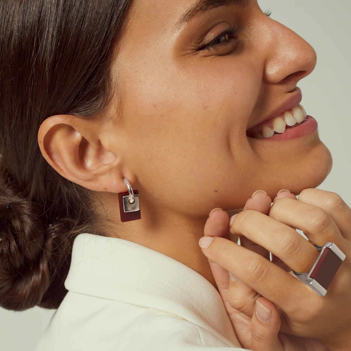 Pendientes bañados en Plata con pieza de metacrilato.