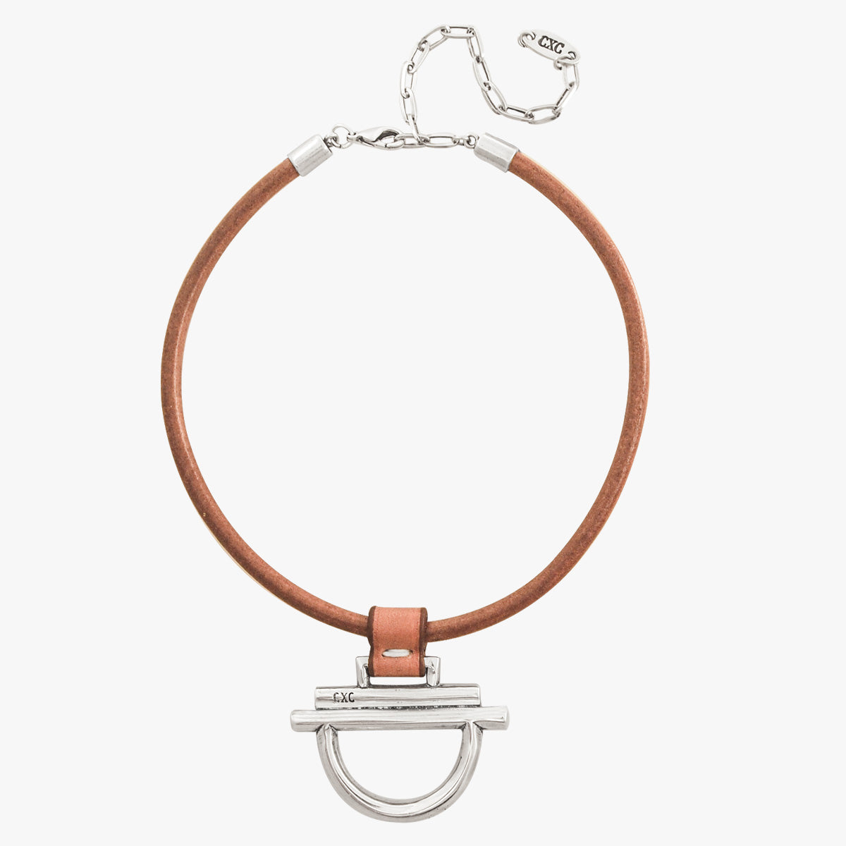 Choker adjustable in size with 5mm diameter camel leather. It has a 12 cm extender chain.