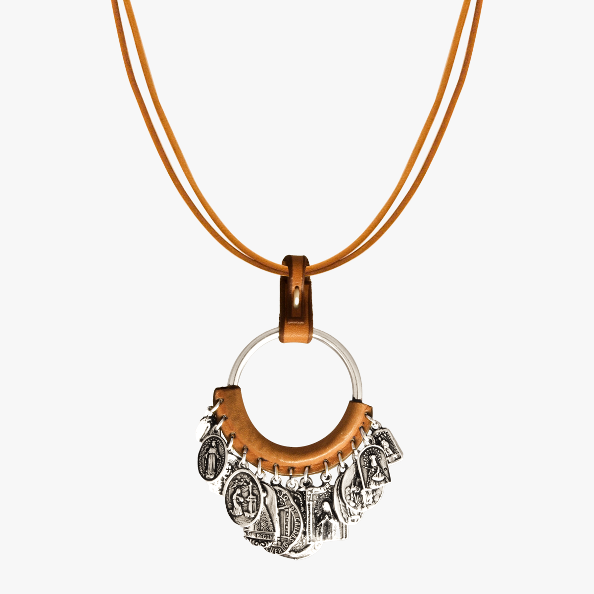 Leather necklace made 100% handmade in Spain. Silver plated.