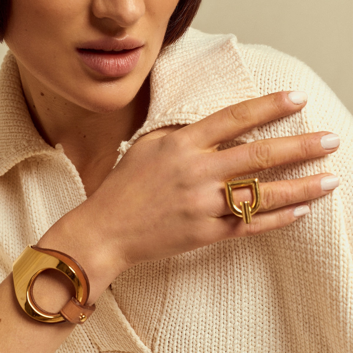 Pulsera con Cuero Camel, con canto matado a mano, teñido y lujado con fileteado. Herraje bañado en Oro.Talla: única y ajustable (Para una muñeca de 15 a 18 cm aprox) Peso: 34 gr