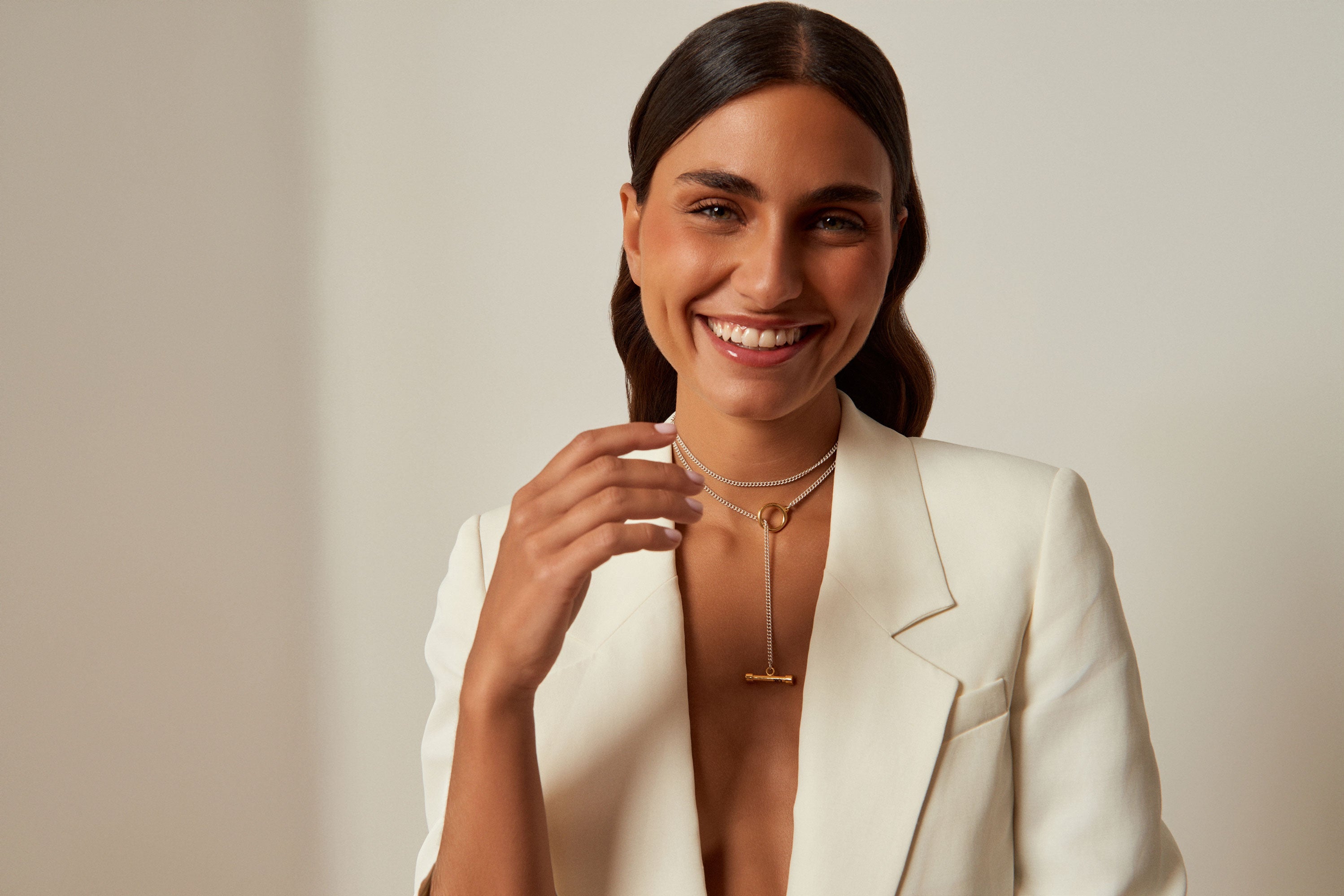 Collar Largo Aurora Sliding, elegancia fluida que se adapta a ti. Con su diseño deslizante y su longitud ideal, este collar se convierte en la pieza clave para cualquier ocasión, añadiendo sofisticación con cada movimiento.