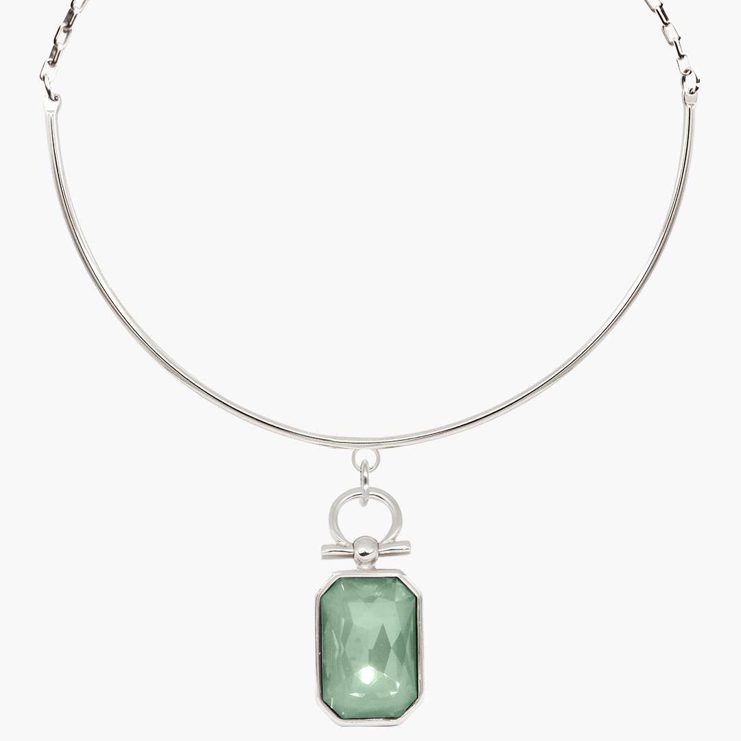 Gargantilla bañada en Plata con piedra Swarovski color agave.