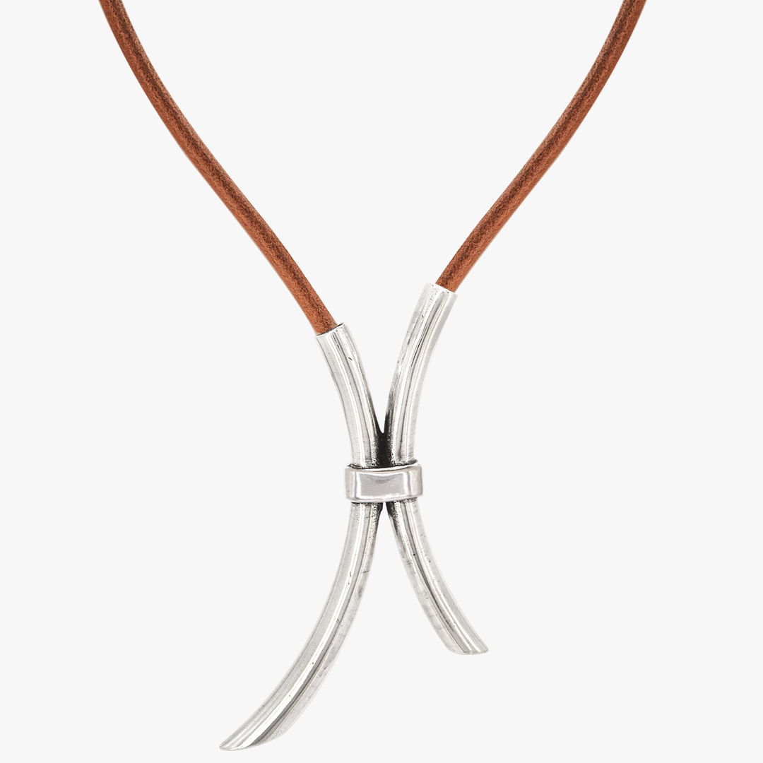 Collar Desvío Cuero, una pieza única que combina la suavidad del cuero con un diseño audaz y moderno. Ideal para quienes buscan un toque de originalidad y sofisticación, este collar es perfecto para realzar cualquier look con un aire de elegancia desenfadada.
