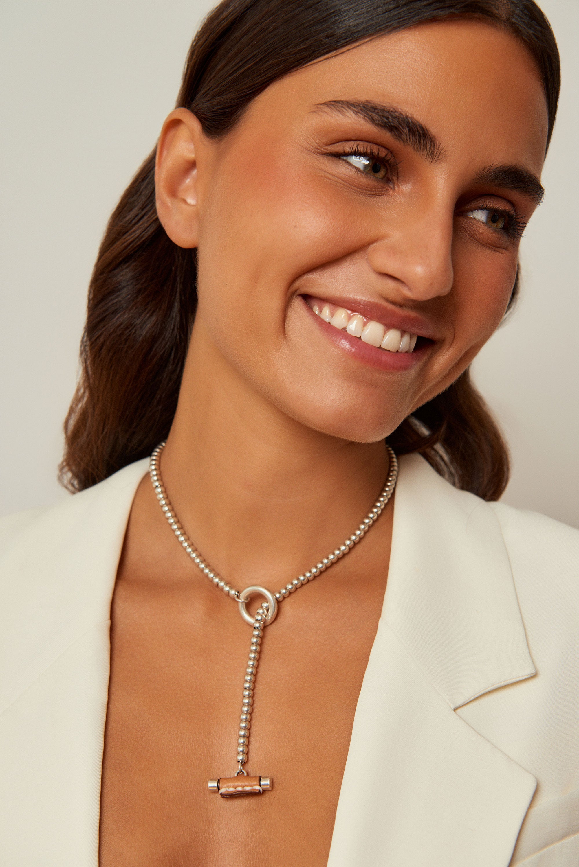 Collar Bolas Sliding Cuero, un toque contemporáneo con un clásico toque de cuero. Su diseño deslizante y las esferas metálicas lo convierten en un accesorio versátil, perfecto para añadir sofisticación y estilo a cualquier look.