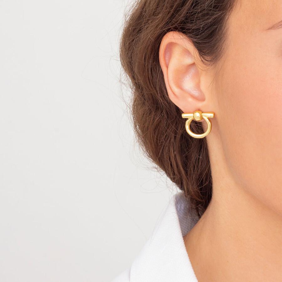 Otro básico ideal para el día son estos pendientes con un pequeño omega. El modelo está producido con una aleación de metales y bañado en oro. También disponible en plata. Diseño exclusivo de CXC, elaborado de manera artesanal en España.