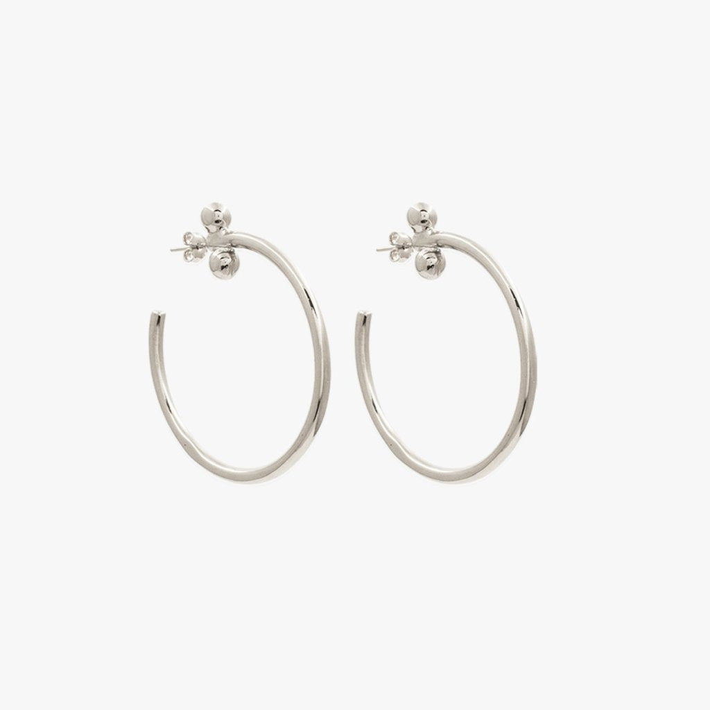 Estos pendientes en forma de aro grande y con el detalle de las bolitas,  son ideales para quienes no desean pasar desapercibidas. El modelo está bañado en plata. También disponible en oro. Diseño exclusivo de CXC, elaborado de manera artesanal en España.
