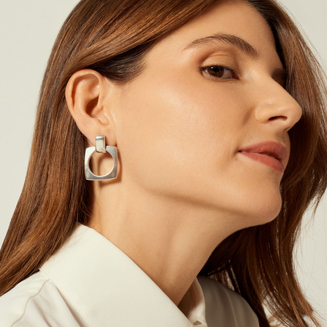 Pendientes bañados en Plata. Largo desde el agujero 2,6 cm. Peso Aprox.: 7,3 gr.