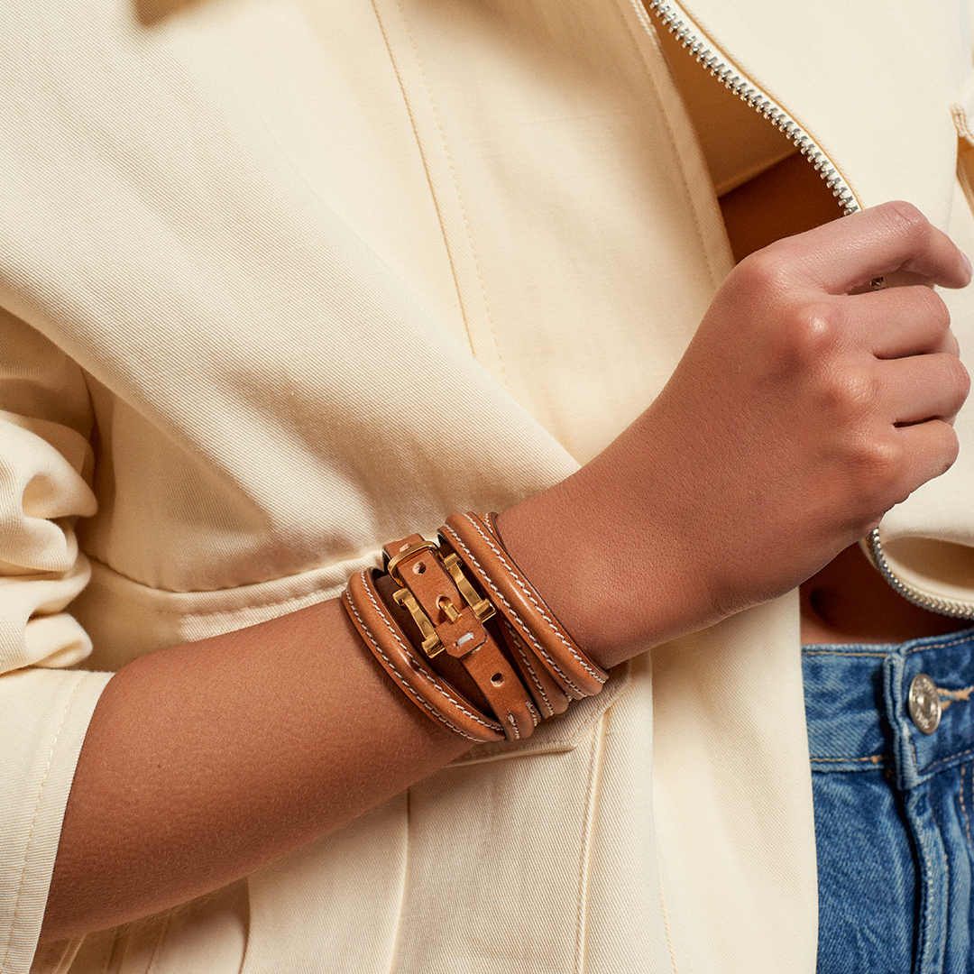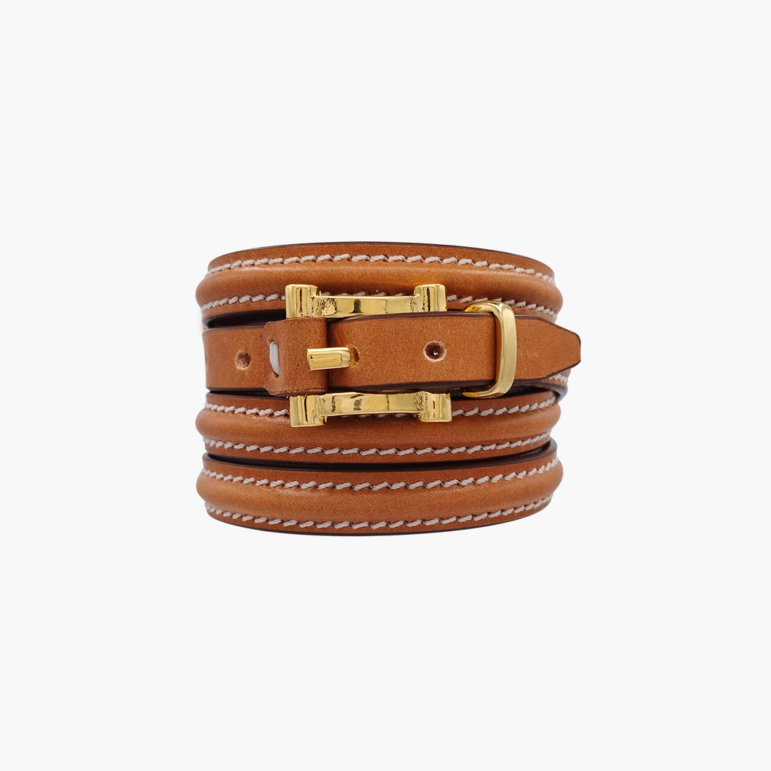 Pulsera con correa de Cuero Camel, cantos matados, teñidos y lujados