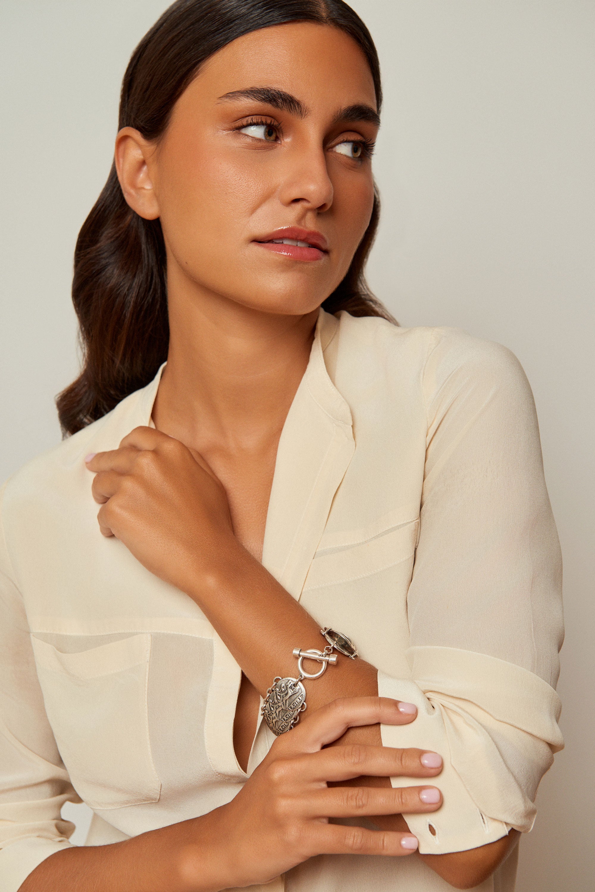 Pulsera Moneda Cuádriga, el poder del símbolo antiguo, la elegancia del diseño atemporal. Una pieza que evoca historia, fuerza y movimiento.