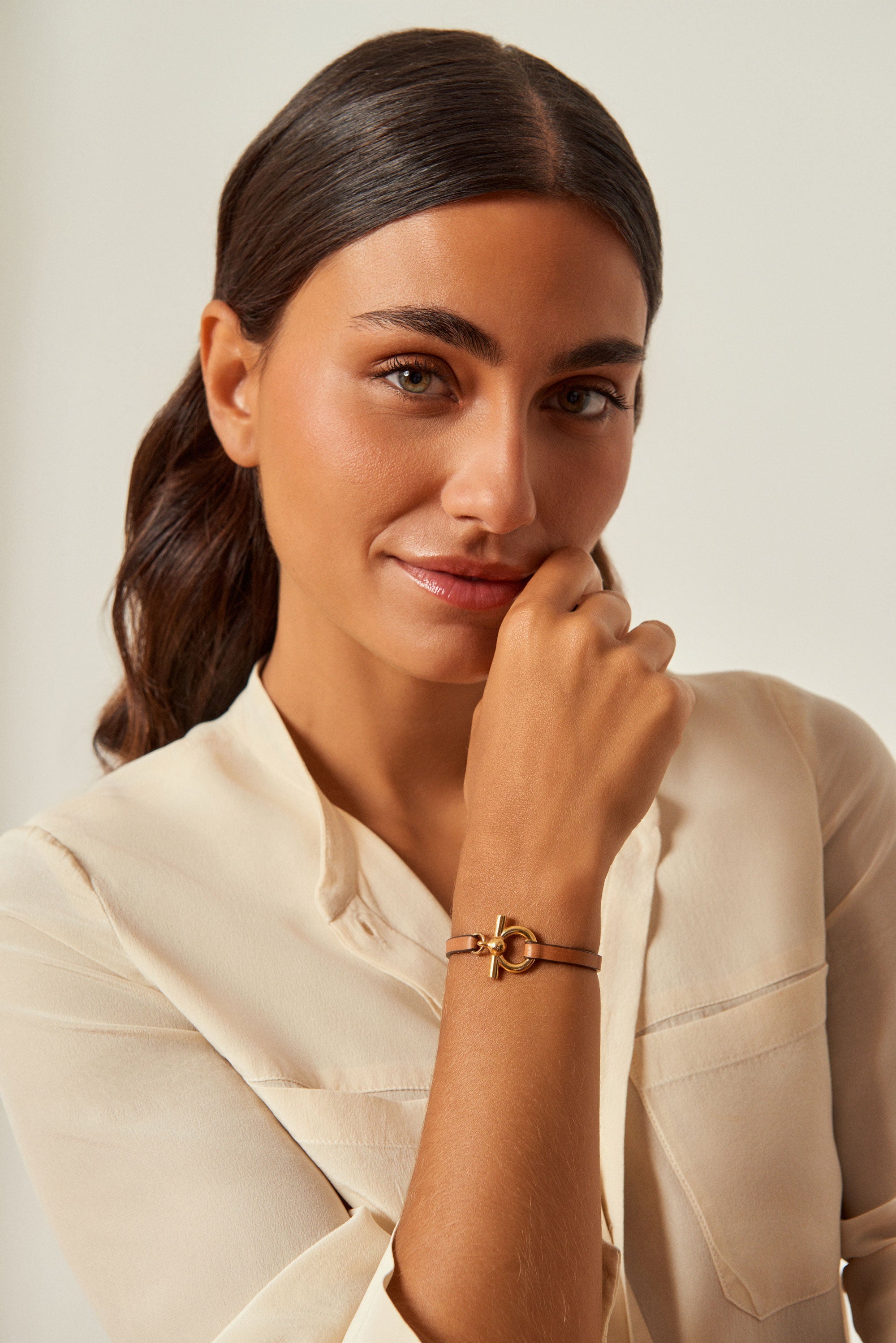 Pulsera Omega Mini Cuero, un diseño compacto y sofisticado, parte de nuestros iconos, que fusiona la fuerza del cuero con la elegancia atemporal. Perfecta para quienes buscan un toque de distinción y estilo único en su día a día.